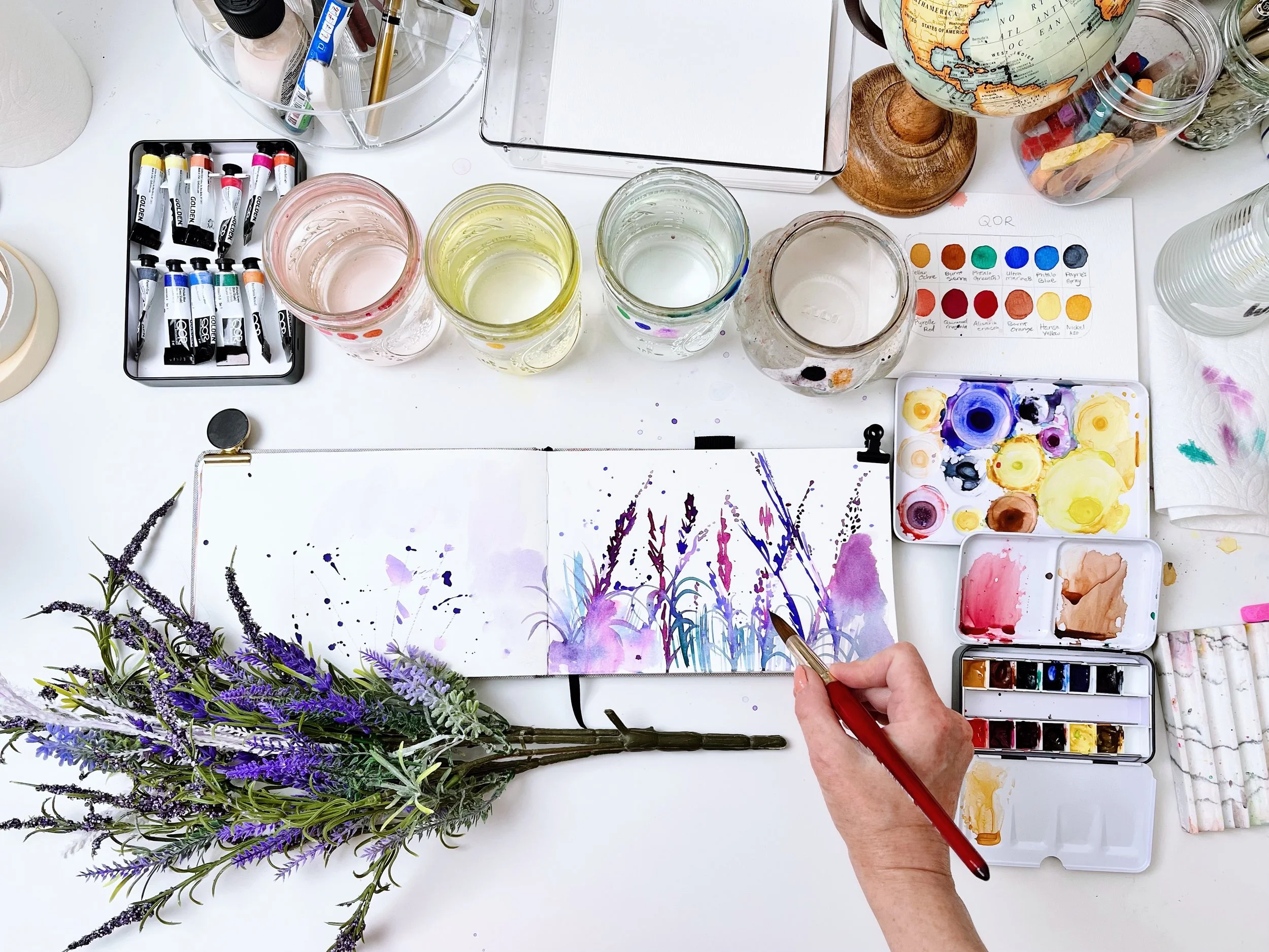 I’ve designed this course to work with a minimum of supplies: 1 brush, 1 paper pack, and a set of 12 watercolor tube paints.